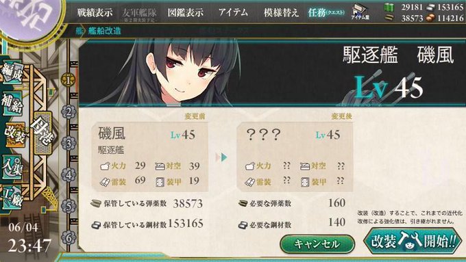 うちの磯風様が改になられました拍手!! あぁー本当可愛い(見た目が) うちの子可愛い!(声が) #艦これ