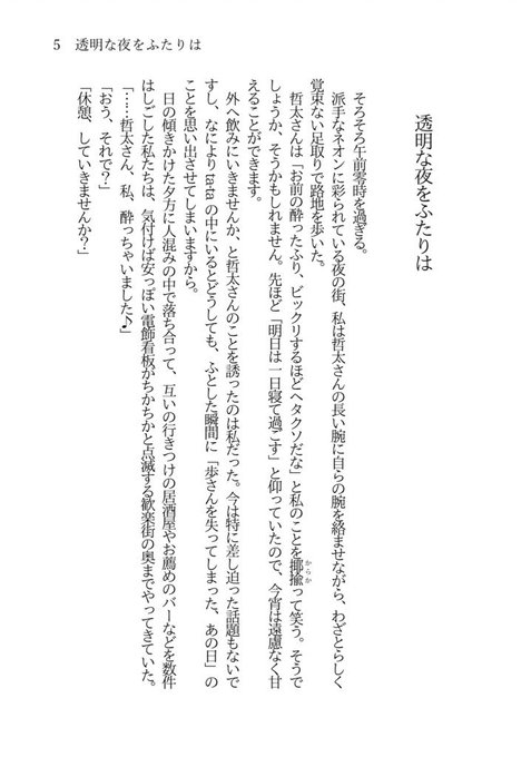 12/18ブリデで発行予定の新刊サンプルです🍸 表紙は深呼吸さんにお願いしました🎶 前に寄稿させていただいた短編の加筆修正版と、その続きのお話を書き下ろしました❕ Twitterに載せた小話をおまけで収録しています🌙