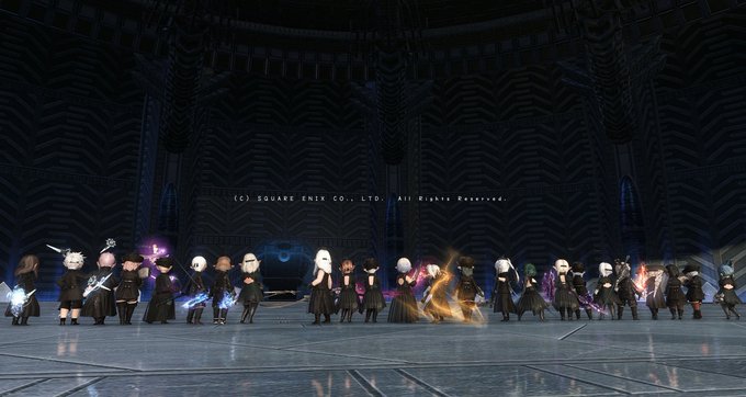 (1/2) ららちゃんず ✕ ヨルハ部隊 24人のヨルハララ部隊でタチノと塔へー ニーアイベントとっても楽しかった、 おつありでした! #lalachans #ララフェル #XIV_PICTCLIP #FF14