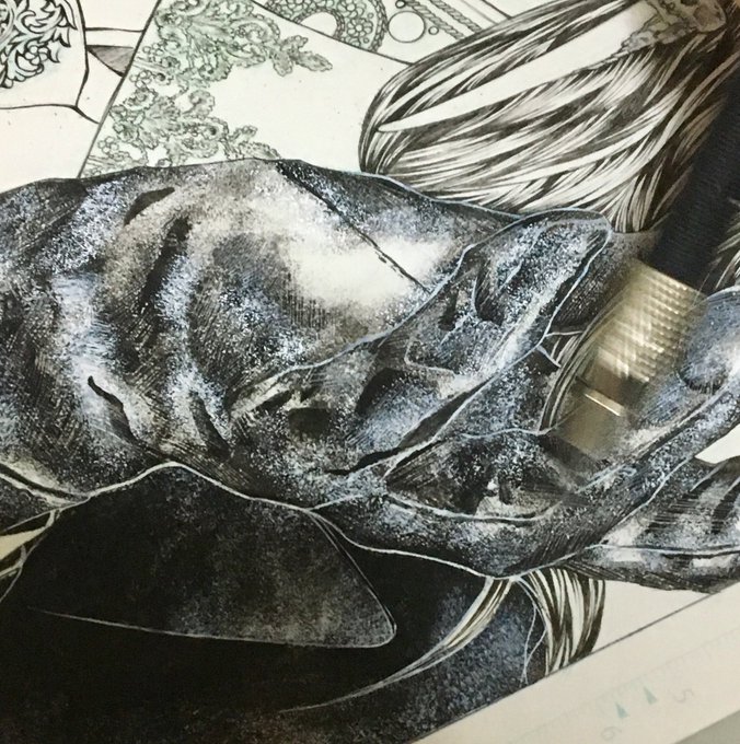 前に描いたバロン兄貴のほぼ全工程② 剥がして〜〜の ホワイトごと紙を削って〜〜の