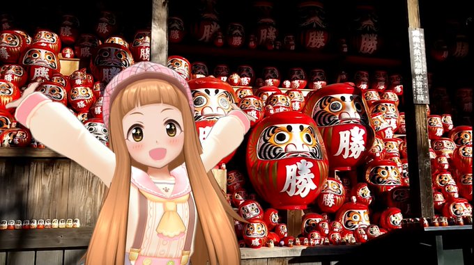 西国三十三所の勝尾寺にて撮影。 紅葉とダルマが有名なお寺で、境内にたくさん置いてあるダルマが可愛かったです。 #デレステAR #市原仁奈