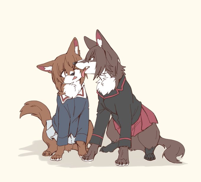 ガルパン擬獣化らくがき 西住姉妹 ずいぶん前に描いたのをリメイク