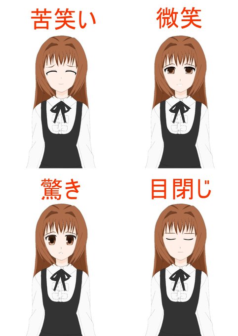 またまた、表情差分をふやしました。 1枚目→「あら?」な感じ 2枚目→苦笑い 3枚目→怯えてる 4枚目→SANC後に使えそう