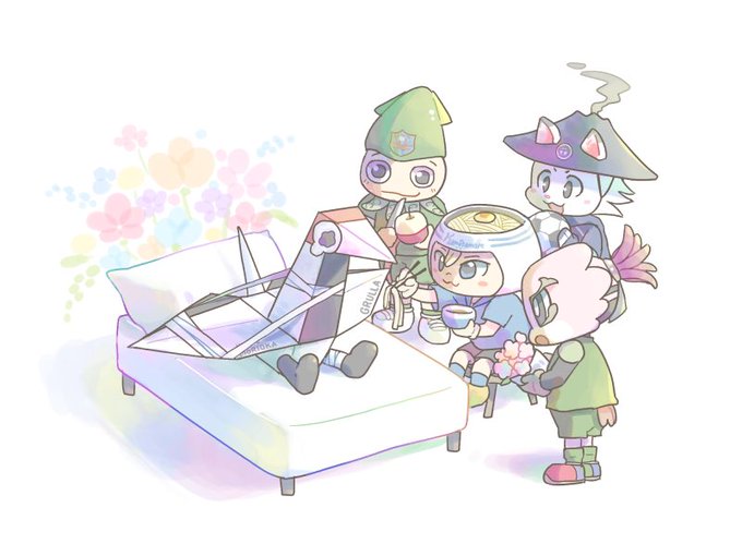キヅールとギッフィー・さぬぴー・ヴァン太・ゆないくーを描きました キヅール早く良くなってね!