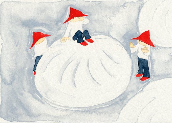 Gnomes on the Meat Bun にくまん #art #illustration #Watercolor #小人 #こびと