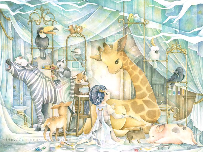動物と人が一緒に暮らす中で見えてくる言葉のない会話を透明水彩で描きます。チンチラとウサギとリチャードソンジリスを始め、動物が好きすぎる人。