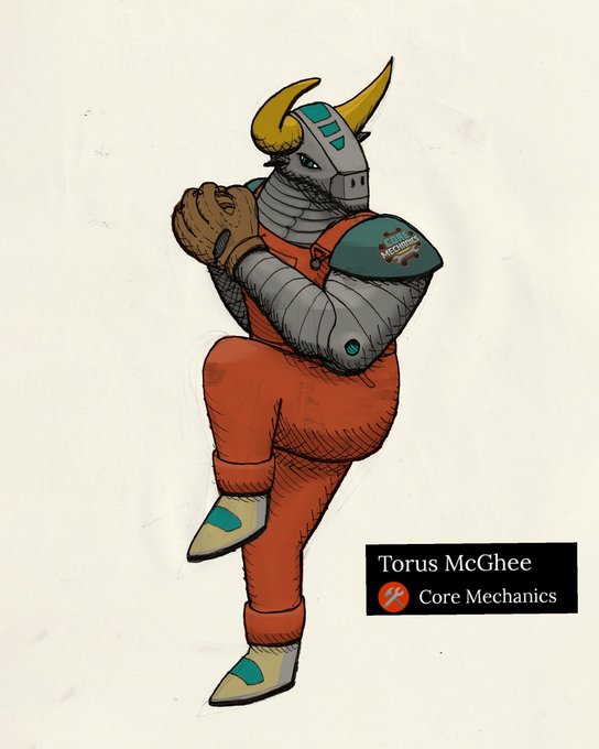 Torus McGhee of the Mechanics and Pitching Machine, who should play for the Mechs, but currently pitches for the Atlantis Georgias.