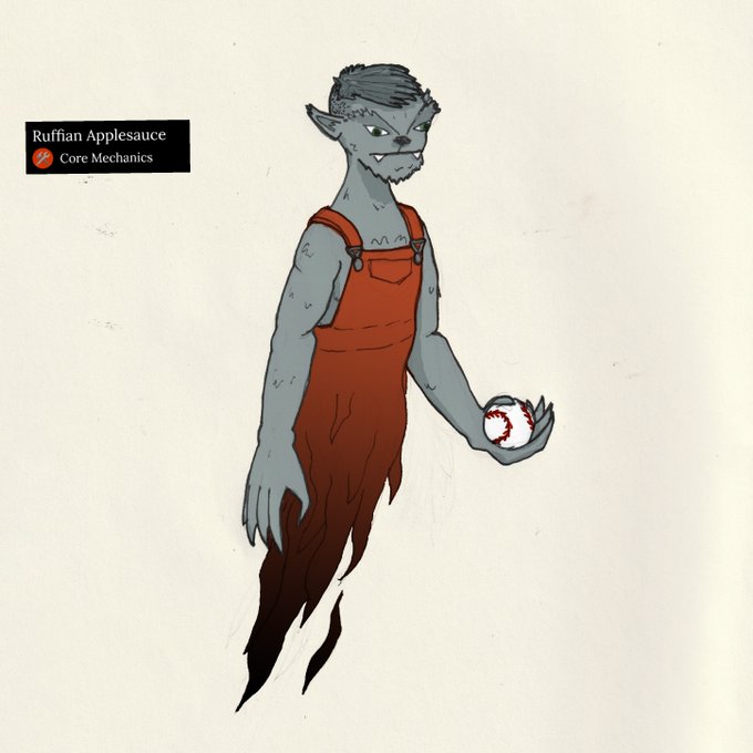 Ruffian Applesauce was incinerated early on in @Blaseball_Core history, but stuck around to keep haunting (mostly) Kennedy Loser at the Pillars, so here's my take on Ghostly Ruffian! #Blaseball