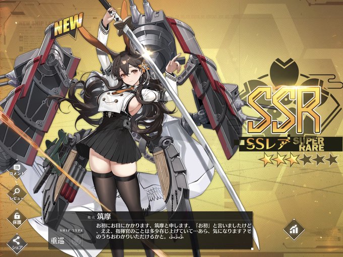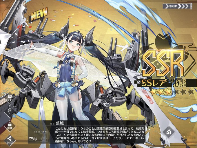 アズレン ・島風 ・筑摩 ・葛城 今回は建造で全部出ましたー