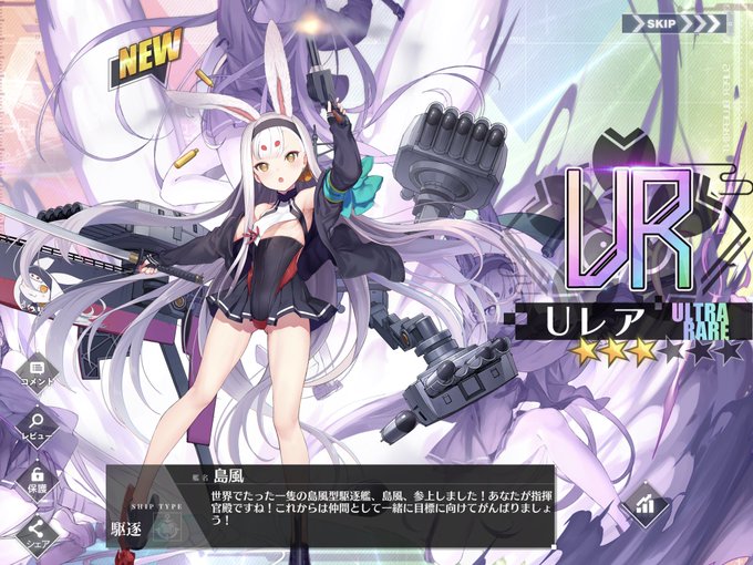 アズレン ・海風 ・由良 最後に由良が残ったので沼ると思ったら割とすぐ来てくれて 助かりました