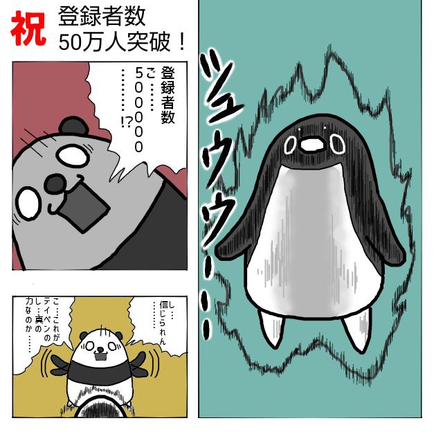 @teikoupenguin おめでとうございます(*´ー`*) 勝手にお祝い(ネタ)漫画(オチなし)を描いてみました。 #テイペン #テイペン魚拓