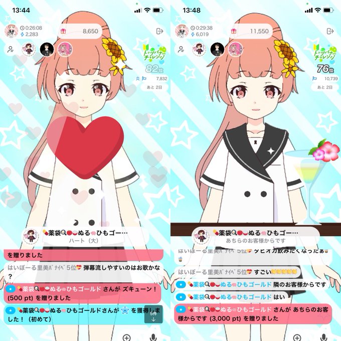 現在68位になりました👏ひまりの配信時間が短い中、ほんとありがとうございます🙇♀️ギフト、スター、コメントで応援してくれた方々ほんとありがとうございます🙇♀️順位キープしたい!見かけたら、応援に来てくださると嬉しいです🙇♀️🙇♀️配信のリザルトはバナイベ終了後にツイートします🐣