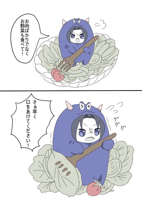 【落書き漫画】 ナチュラルにサラダボウル内に立つモンイオ。多分野菜と一緒にモン毛も食べられる。