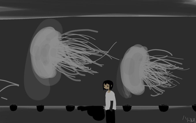 過去絵。誰もいない水族館