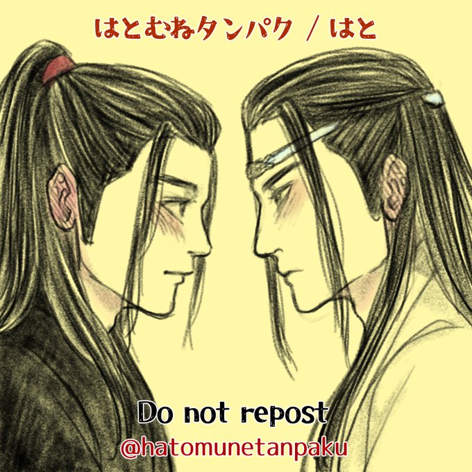 今年1月に描いたやつと10月に描いたやつ。 だいぶ変わったなぁ #一番最初に描いた忘羨と最近描いた忘羨