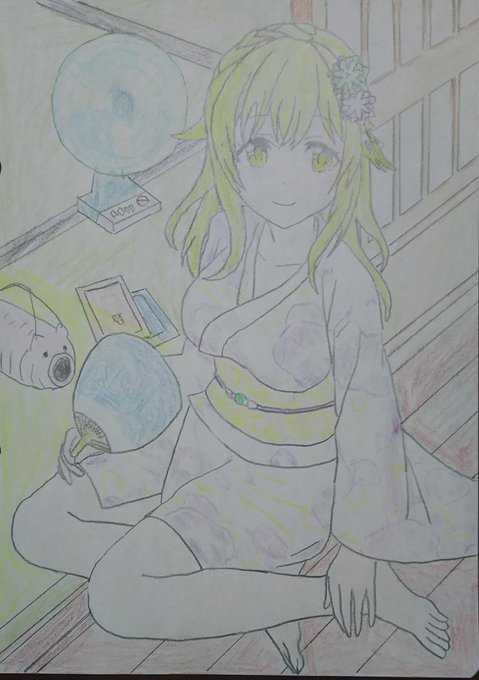 浴衣シオリちゃん完成! 一緒に涼んでもいいですか? #東京ドールズ #模写 #絵描きさんと繋がりたい