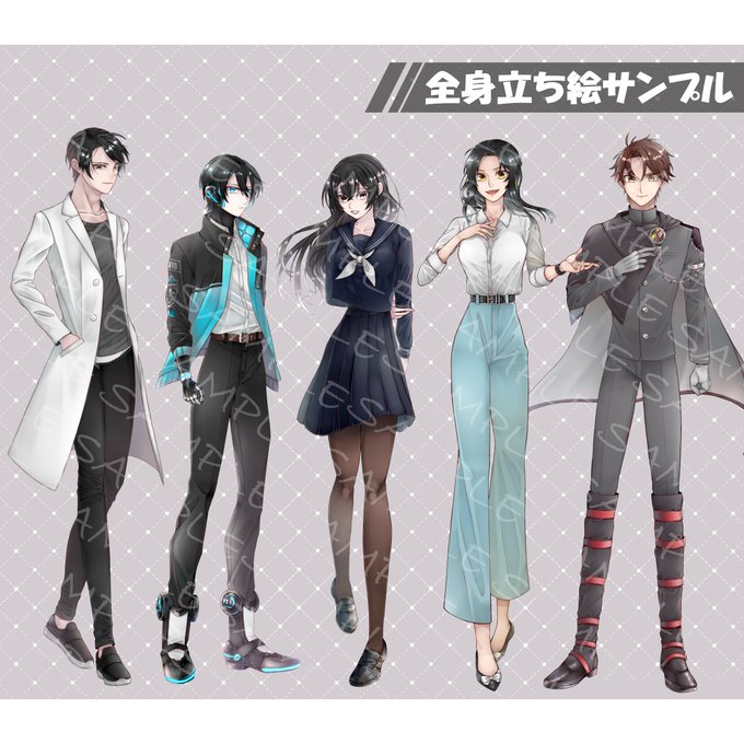 【SKIMA/お仕事】全身立ち絵・表情差分・フード有無差分を描かせていただきました!小物類とても楽しかったです。