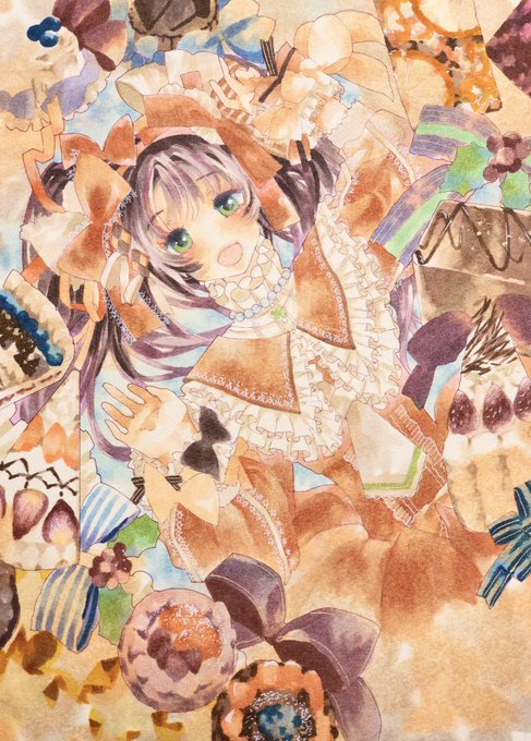 コピックとOhuhuアルコールマーカーで描きました✨ロリィタとスウィーツの一枚、良かったら見てってください〜🎀🍰