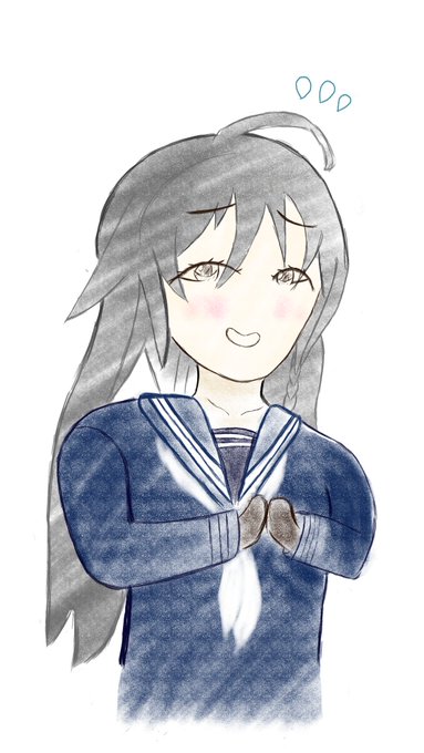 セーラー服を着せられて困る輝子ちゃんを描きたかった… 手は上手く描けなかったので手袋だと思って下さい。 相変わらず顔が弱いです。 #星輝子