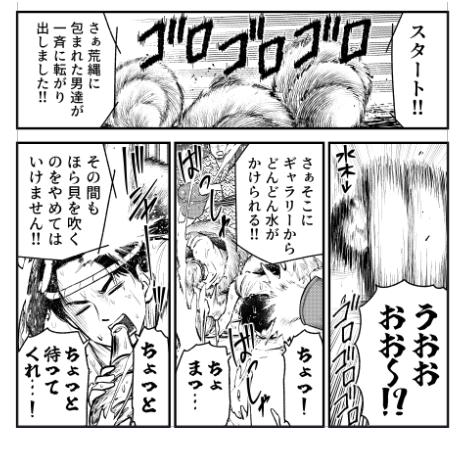 【冬コミ新刊告知①】ゲ謎本で鬼太郎がハイハイレースに出る漫画(僕が原作で作画ぱまさん)と水木が樽に入ってほら貝を吹きながら水をぶっかけられる漫画の二本立て‼️とらで通販も予定してます。日曜日東ラ18-bトリドリルです。