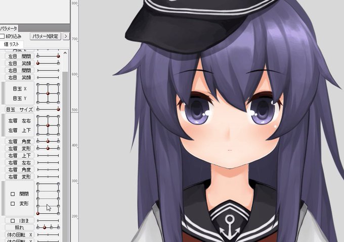 Live2D霞改二モデルの角度XYZの設定がだいぶ出来た!!ヾ(´ω`=´ω`)ノ
