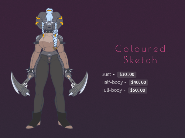 Just a couple example prices of my commissions! Link to more information below! I do D&D, OC, Fan specific, NSFW, Silly Doodles- you want it, I'll do my best to provide!