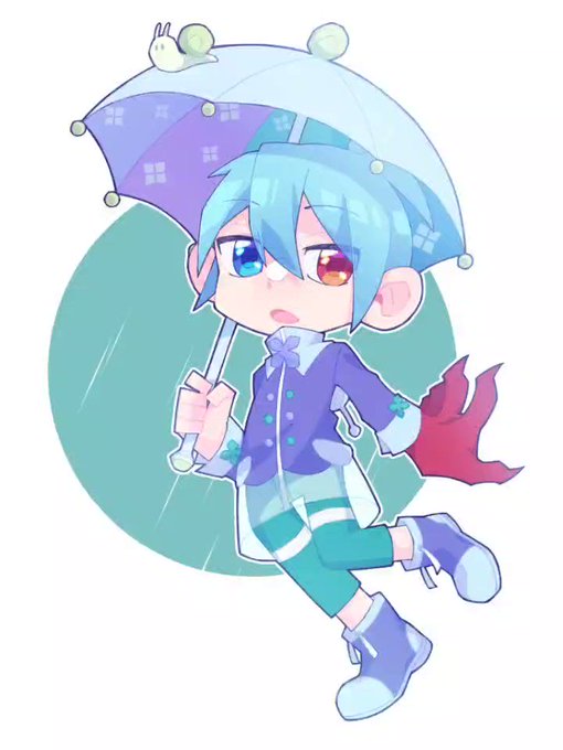 既にあや様と一緒に描いた誕生日絵あげたけど、うきうきのシグ君が描きたくて… 傘の裏地とレインコートに紫陽花柄付いてて可愛いね☔🐌 #シグ誕生祭2022