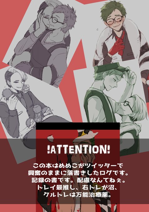 頒布物 ■ツイログ本 A5 / 54P / フルカラー / ¥700(予定) タイトルに偽りなし。ツイッターのログ本です。 ※描きおろしは表紙のみです。 1Pに1~7枚のログがぎゅっと詰まってたり、漫画も入ってます。ぎゅーぎゅー詰め。