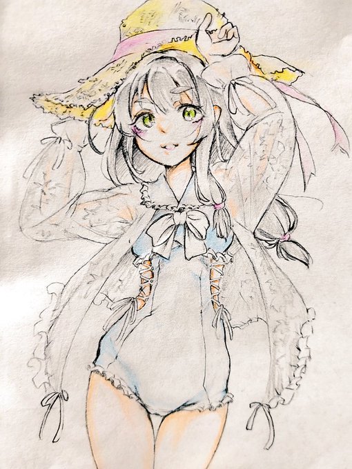 うちの娘の髪型アレンジって言う落書き② 昨日、うちの娘は髪型変えてもそのキャラとして成立するかっていう話になったので試してみたんすよ。