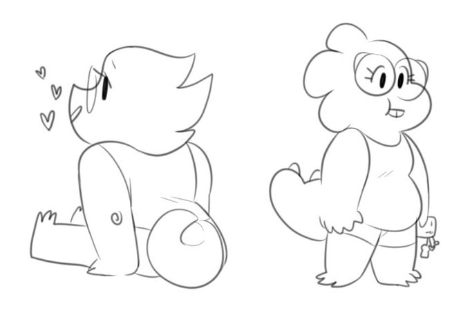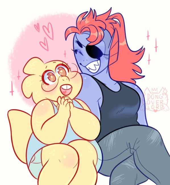 au where undyne is the dino gf and alphys is the fish gf [ yes she has webbed feet/hands ]