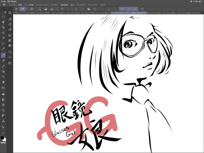最近のラクガキ。縦長画像は文字寄りにトリミングされると知り、横長バージョンを再送しました。 #眼鏡娘 #メガネ女子 #メガネ #クリスタ #ラクガキ #イラスト #CLIPSTUDIO #GlassesGirl #glasses #illustration #graffiti #GG