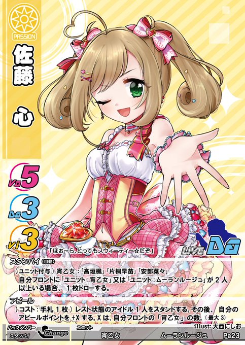 ついに揃いました、ビビッドカラーエイジ。三属性揃って、お互いをカバーし合うバランスのよいユニットが仕上がりました。是非フロントに並べてあげてください。