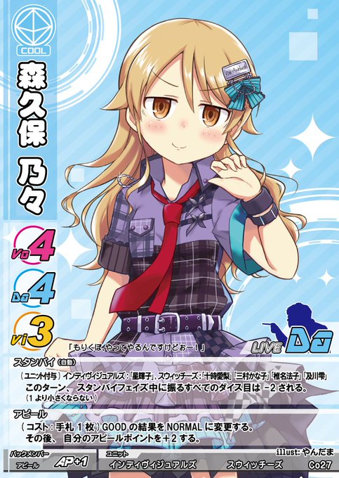 【ダイスDEライブ!ユニット紹介】ついに揃いましたインディヴィジュアルズ!それぞれの個性が光る、数あるユニットの中でもとがりまくってるチームに仕上がってます。もりくぼ、美玲ちゃんどちらかがいれば輝子にもユニットを付与できます。個性を極めて勝利を掴もう!