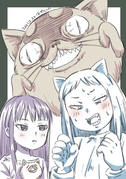 猫の日という事でハイスコアガールヒロイン2人のフェリシアコス絵を描こうと思ってたのに…🤔? 家の20年以上生きてる猫様も🤳