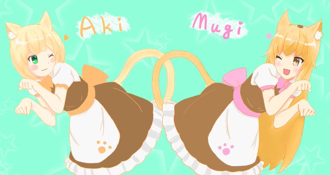 猫の日ということで私の推しの2人です にゃーん #むぎあーと #アキくんちゃんアート