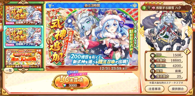 #あやらぶ 今年を少しずつ振り返ろう⑯ というわけで最終回 今年最後のイベント、クリスマス 新キャラはみんなかわいいので 年越して後悔する前にガチャへGOだ!!! ※個人的にハクはマジでオススメです