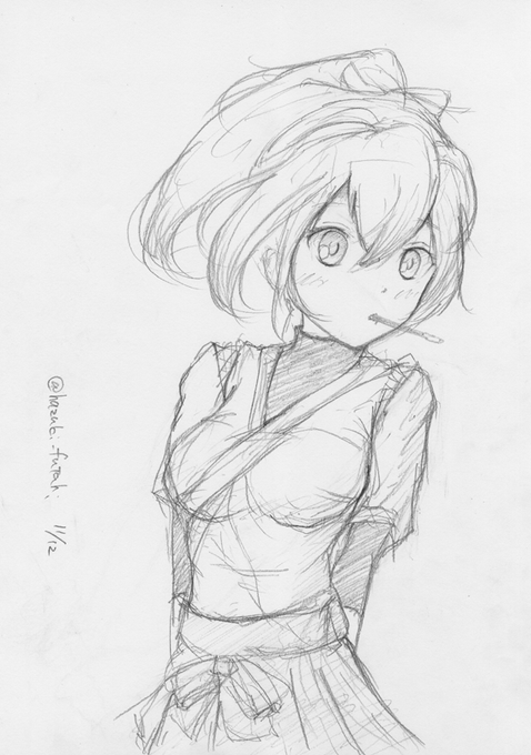昨日ポッキー描けなかったので。いつもの鉛筆雑ラフですがよろしくお願いします。(›´ω`‹ ) #艦これ版深夜の真剣お絵描き60分一本勝負 #艦これ版真剣お絵描き60分一本勝負_20151112