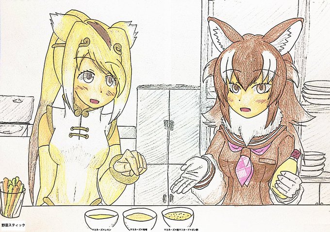 お手製ドレッシング #けものフレンズ #キンシコウ(けものフレンズ) #ニホンオオカミ(けものフレンズ) #マヨネーズ #フレンズ食道楽シリーズ #アナログ https://t.co/Q1T4DyLQ2l