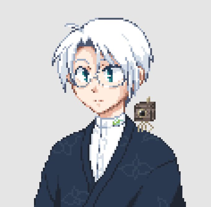 いっぱちくん擬人化したらどんな感じやろかと思った ・若くはなさそう ・真鍮縁の黒レンズ眼鏡 ・木目柄の着物