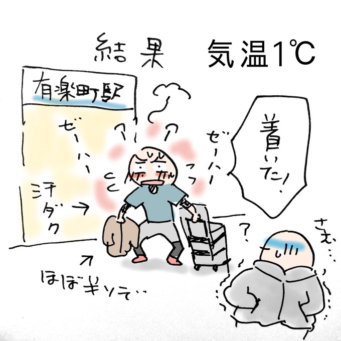 イベント体験漫画その①焦るからいつもの方向音痴が5倍くらいになるんよねぇ🫠早起きしたのに2時間ロスするから意味ねぇー‼︎極寒で汗だくの怪しい人。 #ハンドメイドインジャパンフェス #イラスト