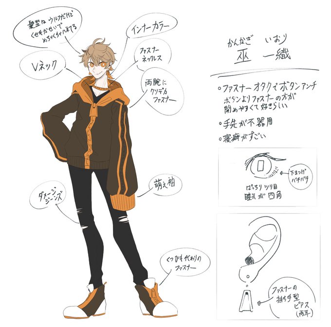 創作!!!!!!!!!! ファスナーオタクと内なる趣味がピアスという形で溢れ出た人です。 背は同じくらい。 誤字脱字あったら土下座します(大声)