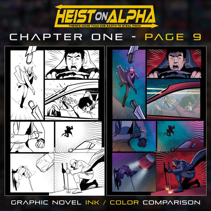 Here's an #ink | #color comparison for page 9 of the #heistonalpha #graphicnovel Art by Debora Lancianese Color by @ansori_ichsan