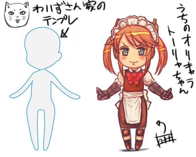 わいずさん家@xx_wise_xx のミニキャラテンプレお借りしてうちのオリキャラ、 トーリャちゃん描きました なんか久しぶりに描いた気がする