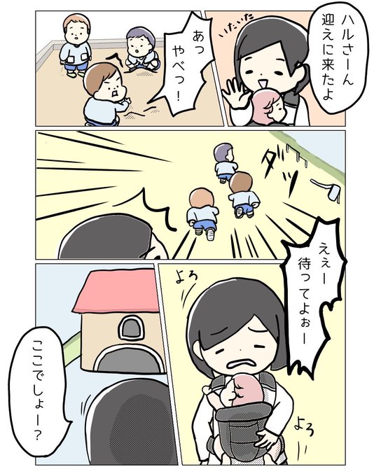 今日の2ページ 幼稚園から帰りたくない故の逃走🏃♂️ #育児絵日記 #育児漫画 #子育て #年少 #幼稚園 #お迎え #漫画 #イラスト #漫画が読めるハッシュタグ