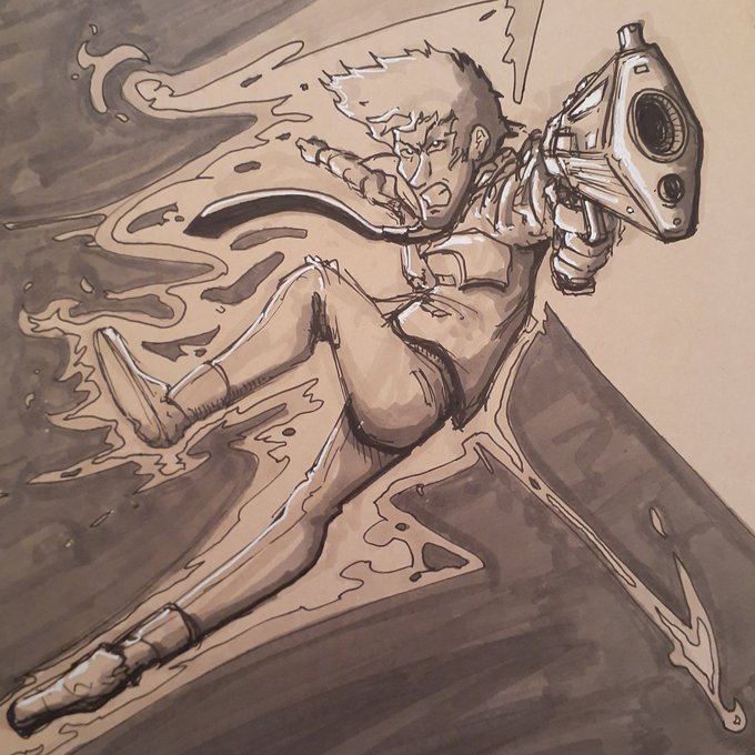 Spike 10/10! Action pose with gun 💥 #inktober2019 #inktober #spiketober #cowboybebop #action #pose #toons #ink #pen #inkdrawing #pendrawing #drawing #sketchbook