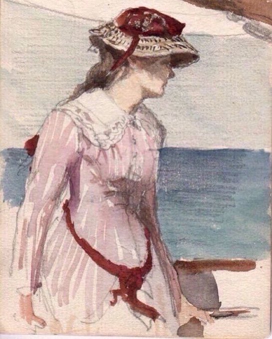 Hélène sur la plage de St Pair - H. Zuber - France 1883 - Aquarelle - Coll. part. https://t.co/b5NUiQNx42