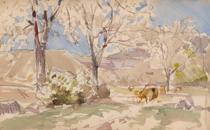 Montains & trees in Spring - H. Zuber - Mailly 1895 - Watercolour - Priv. coll.