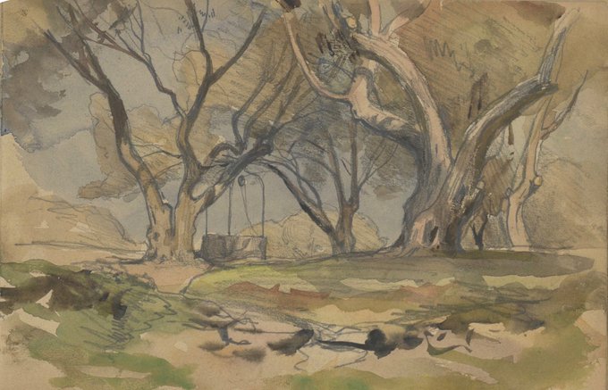Old well and olive trees - H. Zuber - Provence 1996 - Watercolor - Priv. coll.