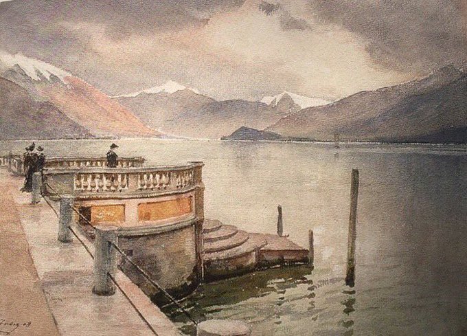 Lac de Côme à Bellagio - H. Zuber - Italie 1908 - Aquarelle 39x51 - Coll. part.