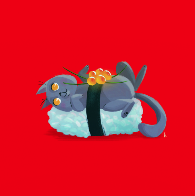 Gallery Show @elastictv: 1 of 3 pieces cats Kitty Handroll #sketch #Photoshop #conceptart #sushi #cats #japanese